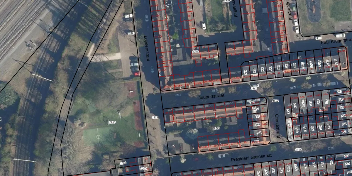 Het perceel waarop Joubertstraat 35 staat heeft een oppervlakte van 2590 m². Dit is een zeer groot perceel. De perceeloppervlakte wordt geregistreerd door het Kadaster. Gedetailleerde informatie over de maten van dit perceel kunt u vinden in het rapport Kadastrale kaart met maatvoering van Joubertstraat 35.