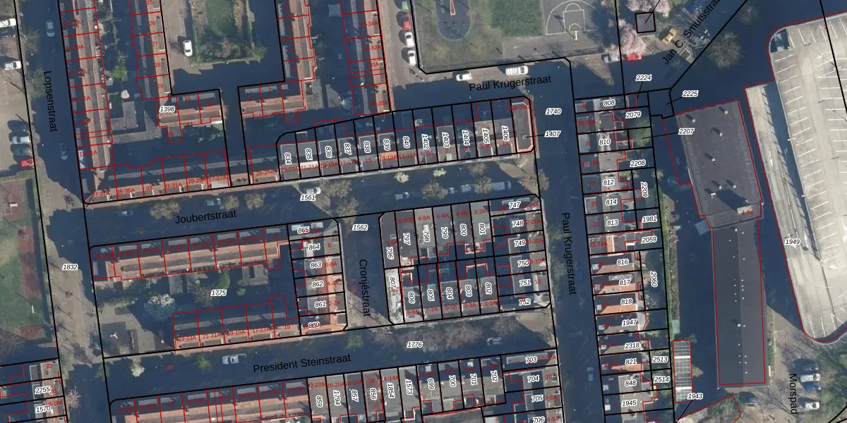 Het perceel waarop Joubertstraat 8 staat heeft een oppervlakte van 59 m². Dit is een klein perceel. De perceeloppervlakte wordt geregistreerd door het Kadaster. Gedetailleerde informatie over de maten van dit perceel kunt u vinden in het rapport Kadastrale kaart met maatvoering van Joubertstraat 8.