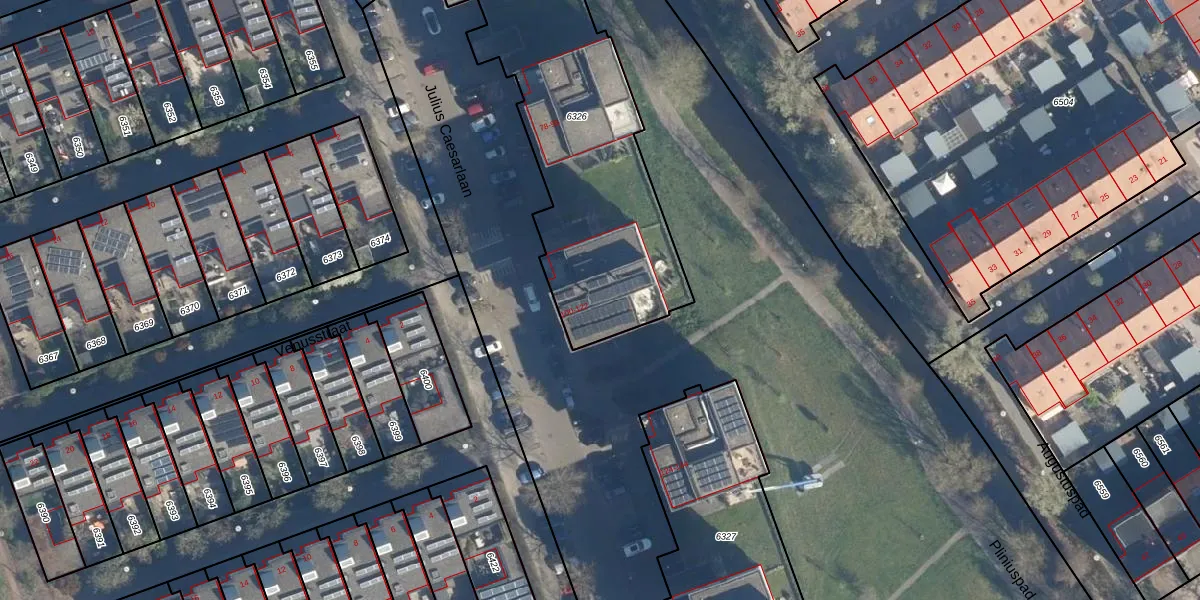 Julius Caesarlaan 114 is gelegen op kadastraal perceel LDN01T6326. Deze kadastrale aanduiding is uniek en wordt gebruikt door het Kadaster om eigendomsrechten en andere zakelijke rechten vast te leggen. Het perceel maakt onderdeel uit van de kadastrale gemeente Leiden.