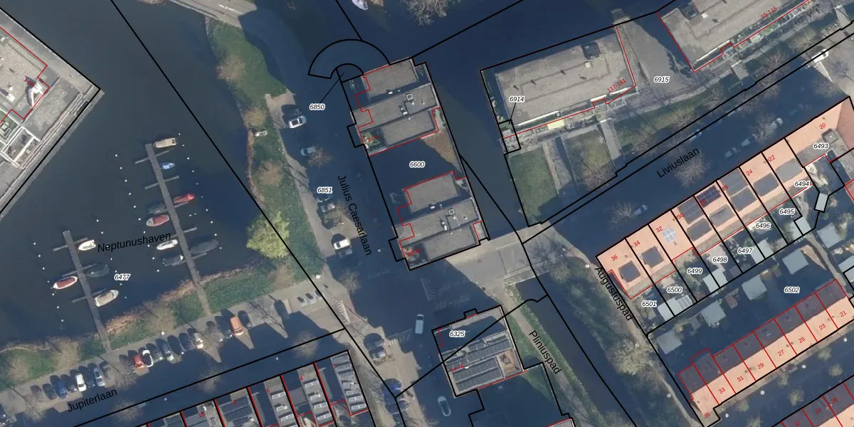 Julius Caesarlaan 40 is gelegen op kadastraal perceel LDN01T6600. Deze kadastrale aanduiding is uniek en wordt gebruikt door het Kadaster om eigendomsrechten en andere zakelijke rechten vast te leggen. Het perceel maakt onderdeel uit van de kadastrale gemeente Leiden.