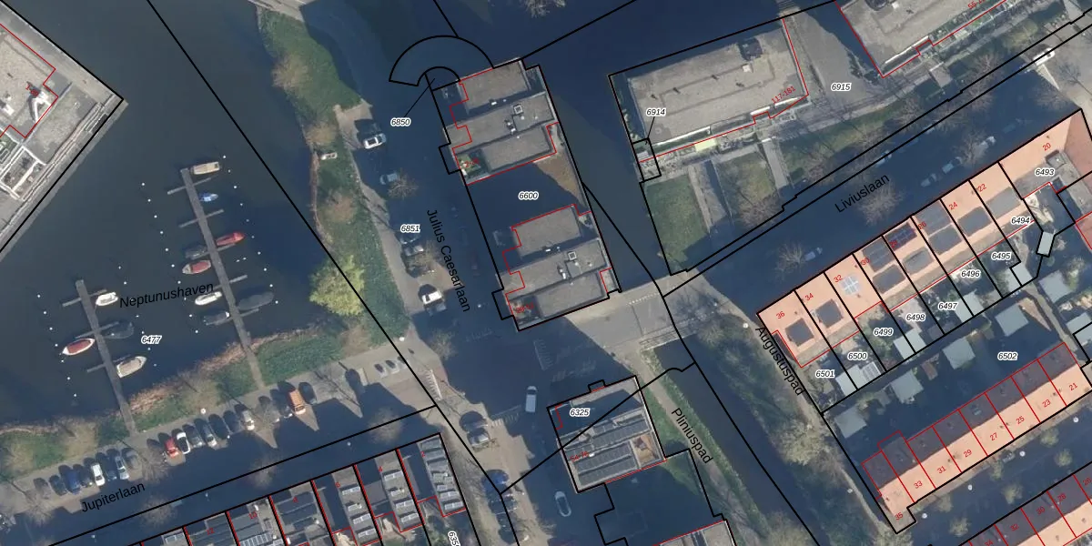 Julius Caesarlaan 42 is gelegen op kadastraal perceel LDN01T6600. Deze kadastrale aanduiding is uniek en wordt gebruikt door het Kadaster om eigendomsrechten en andere zakelijke rechten vast te leggen. Het perceel maakt onderdeel uit van de kadastrale gemeente Leiden.