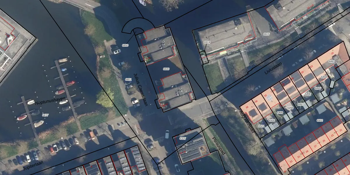 Julius Caesarlaan 48 is gelegen op kadastraal perceel LDN01T6600. Deze kadastrale aanduiding is uniek en wordt gebruikt door het Kadaster om eigendomsrechten en andere zakelijke rechten vast te leggen. Het perceel maakt onderdeel uit van de kadastrale gemeente Leiden.