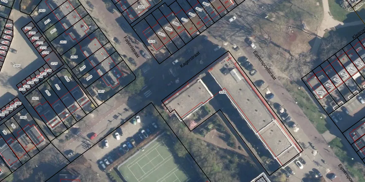 Kagerstraat 3-D is gelegen op kadastraal perceel LDN01P3208. Deze kadastrale aanduiding is uniek en wordt gebruikt door het Kadaster om eigendomsrechten en andere zakelijke rechten vast te leggen. Het perceel maakt onderdeel uit van de kadastrale gemeente Leiden.