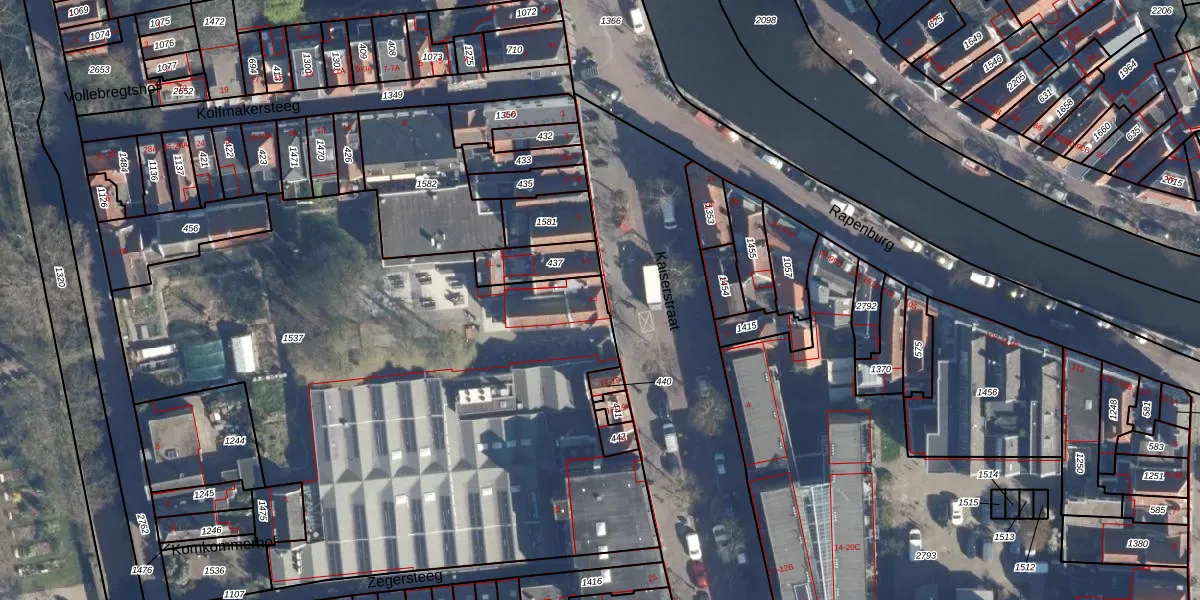 Het perceel waarop Kaiserstraat 13 staat heeft een oppervlakte van 3586 m². Dit is een zeer groot perceel. De perceeloppervlakte wordt geregistreerd door het Kadaster. Gedetailleerde informatie over de maten van dit perceel kunt u vinden in het rapport Kadastrale kaart met maatvoering van Kaiserstraat 13.