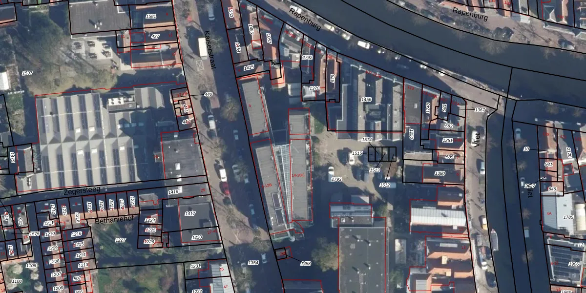 Het perceel waarop Kaiserstraat 14-C staat heeft een oppervlakte van 5749 m². Dit is een zeer groot perceel. De perceeloppervlakte wordt geregistreerd door het Kadaster. Gedetailleerde informatie over de maten van dit perceel kunt u vinden in het rapport Kadastrale kaart met maatvoering van Kaiserstraat 14-C.