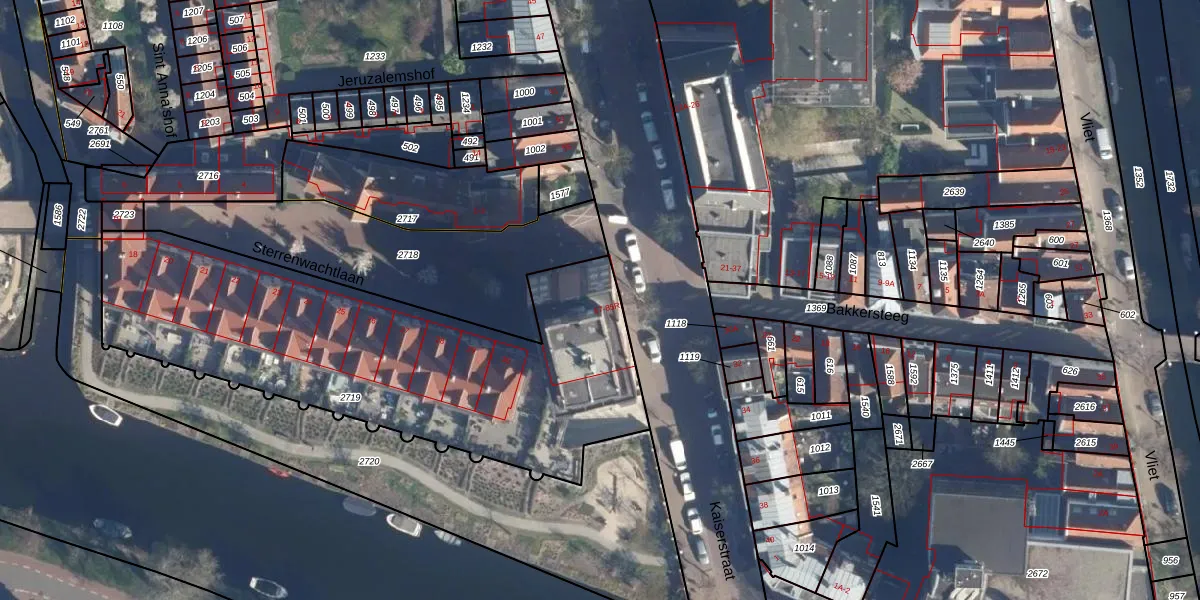 Het perceel waarop Kaiserstraat 59 staat heeft een oppervlakte van 2095 m². Dit is een zeer groot perceel. De perceeloppervlakte wordt geregistreerd door het Kadaster. Gedetailleerde informatie over de maten van dit perceel kunt u vinden in het rapport Kadastrale kaart met maatvoering van Kaiserstraat 59.