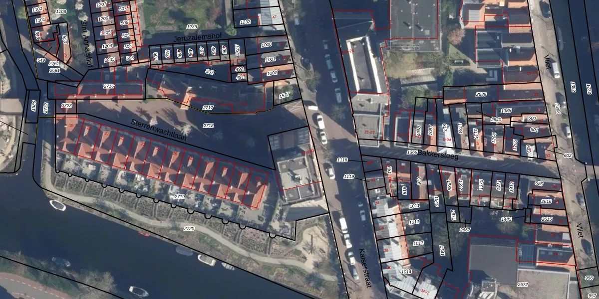 Het perceel waarop Kaiserstraat 63 staat heeft een oppervlakte van 2095 m². Dit is een zeer groot perceel. De perceeloppervlakte wordt geregistreerd door het Kadaster. Gedetailleerde informatie over de maten van dit perceel kunt u vinden in het rapport Kadastrale kaart met maatvoering van Kaiserstraat 63.