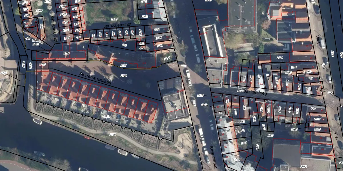 Het perceel waarop Kaiserstraat 69 staat heeft een oppervlakte van 2095 m². Dit is een zeer groot perceel. De perceeloppervlakte wordt geregistreerd door het Kadaster. Gedetailleerde informatie over de maten van dit perceel kunt u vinden in het rapport Kadastrale kaart met maatvoering van Kaiserstraat 69.