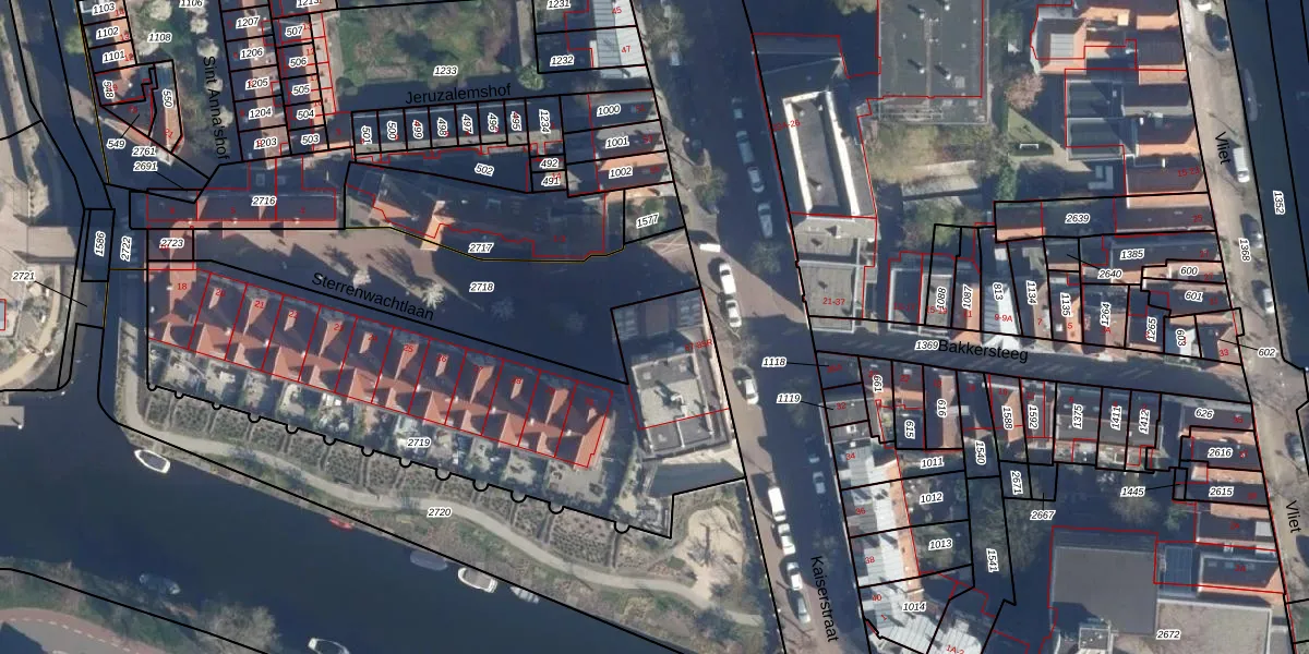 Het perceel waarop Kaiserstraat 73 staat heeft een oppervlakte van 2095 m². Dit is een zeer groot perceel. De perceeloppervlakte wordt geregistreerd door het Kadaster. Gedetailleerde informatie over de maten van dit perceel kunt u vinden in het rapport Kadastrale kaart met maatvoering van Kaiserstraat 73.
