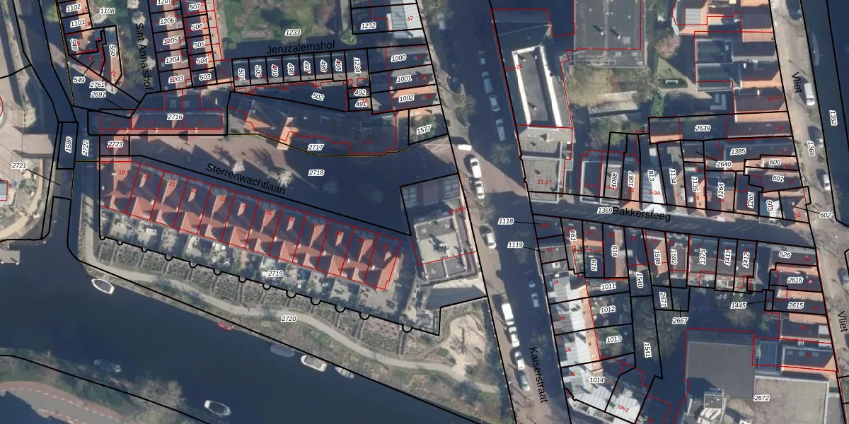 Het perceel waarop Kaiserstraat 75 staat heeft een oppervlakte van 2095 m². Dit is een zeer groot perceel. De perceeloppervlakte wordt geregistreerd door het Kadaster. Gedetailleerde informatie over de maten van dit perceel kunt u vinden in het rapport Kadastrale kaart met maatvoering van Kaiserstraat 75.