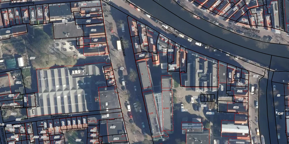 Het perceel waarop Kaiserstraat 8-G staat heeft een oppervlakte van 5749 m². Dit is een zeer groot perceel. De perceeloppervlakte wordt geregistreerd door het Kadaster. Gedetailleerde informatie over de maten van dit perceel kunt u vinden in het rapport Kadastrale kaart met maatvoering van Kaiserstraat 8-G.