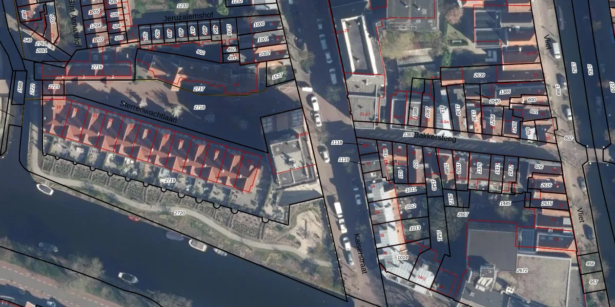 Het perceel waarop Kaiserstraat 85-R staat heeft een oppervlakte van 2095 m². Dit is een zeer groot perceel. De perceeloppervlakte wordt geregistreerd door het Kadaster. Gedetailleerde informatie over de maten van dit perceel kunt u vinden in het rapport Kadastrale kaart met maatvoering van Kaiserstraat 85-R.