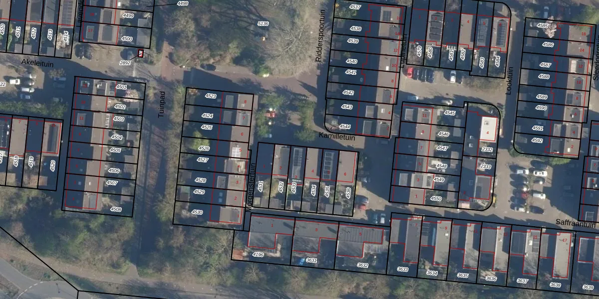 Gebruik de zoekbalk of klik op een perceel voor informatie over de adressen binnen dit perceel.