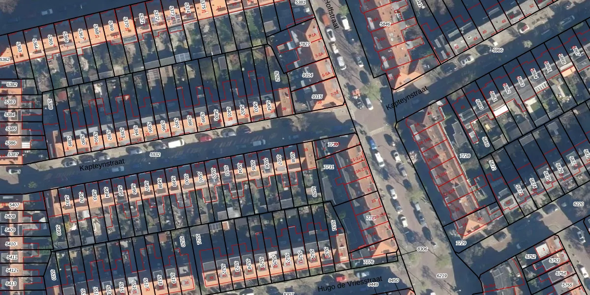 Gebruik de zoekbalk of klik op een perceel voor informatie over de adressen binnen dit perceel.