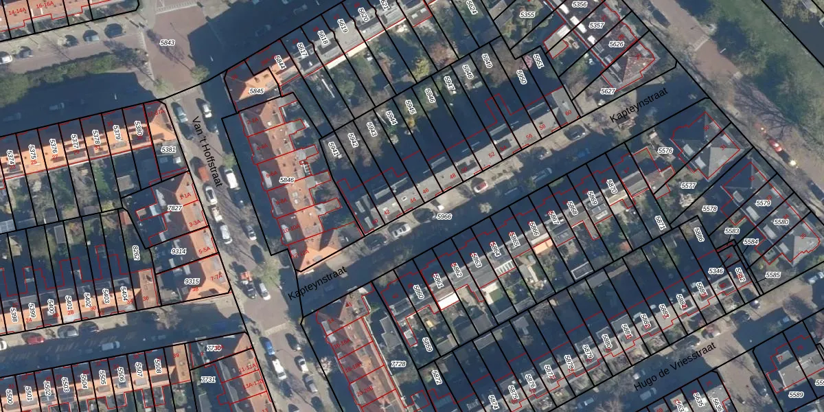 Het perceel waarop Kapteynstraat 44 staat heeft een oppervlakte van 140 m². Dit is een middelgroot perceel. De perceeloppervlakte wordt geregistreerd door het Kadaster. Gedetailleerde informatie over de maten van dit perceel kunt u vinden in het rapport Kadastrale kaart met maatvoering van Kapteynstraat 44.