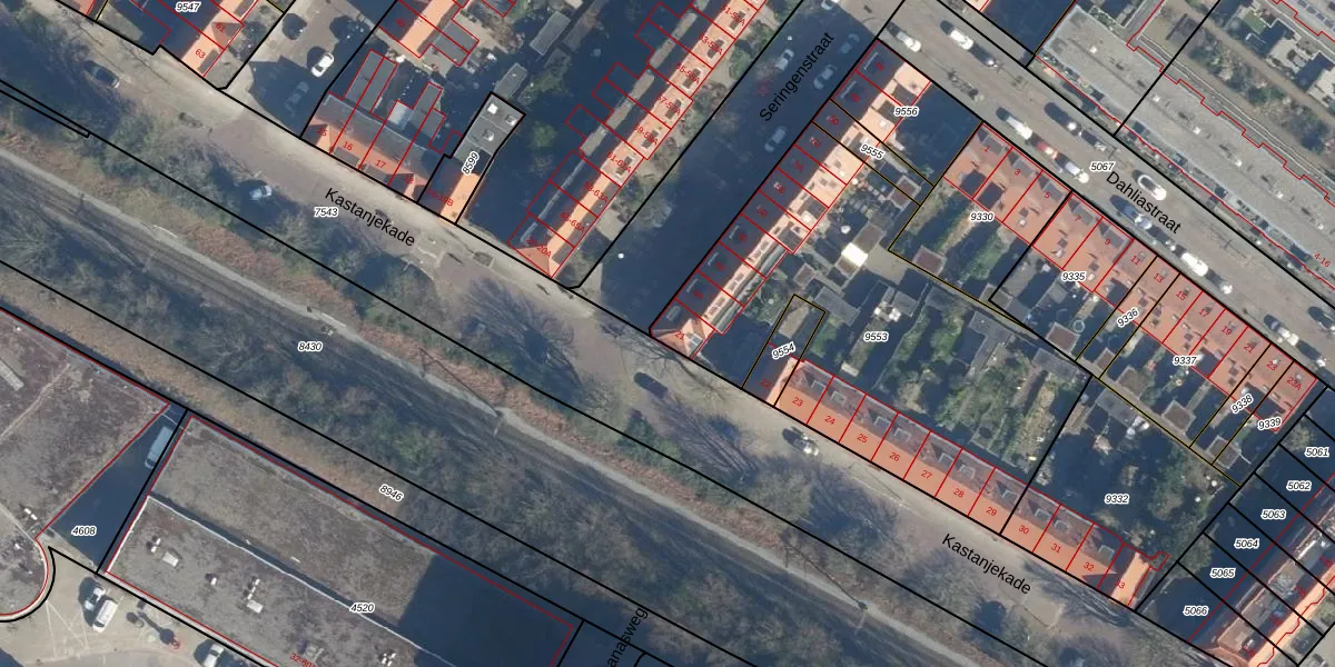 Kastanjekade 21 is gelegen op kadastraal perceel LDN01M9553. Deze kadastrale aanduiding is uniek en wordt gebruikt door het Kadaster om eigendomsrechten en andere zakelijke rechten vast te leggen. Het perceel maakt onderdeel uit van de kadastrale gemeente Leiden.