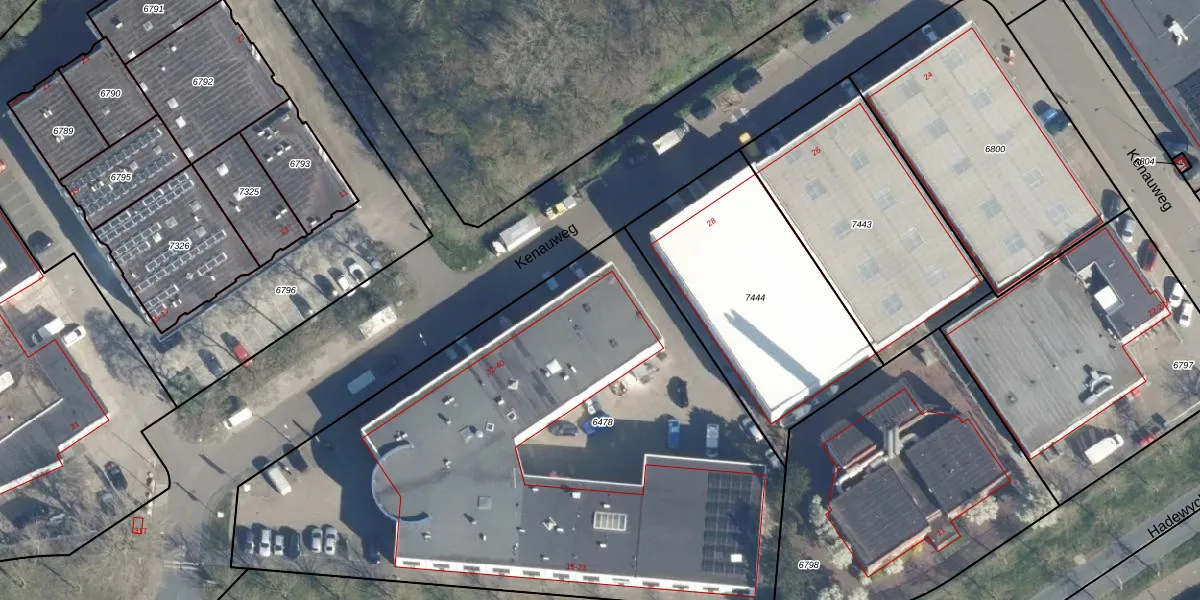 Het perceel waarop Kenauweg 32-B staat heeft een oppervlakte van 3560 m². Dit is een zeer groot perceel. De perceeloppervlakte wordt geregistreerd door het Kadaster. Gedetailleerde informatie over de maten van dit perceel kunt u vinden in het rapport Kadastrale kaart met maatvoering van Kenauweg 32-B.