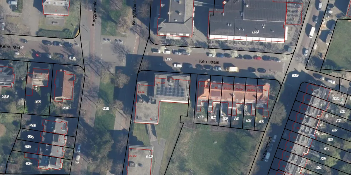 Kernstraat 15-E is gelegen op kadastraal perceel LDN01Q1584. Deze kadastrale aanduiding is uniek en wordt gebruikt door het Kadaster om eigendomsrechten en andere zakelijke rechten vast te leggen. Het perceel maakt onderdeel uit van de kadastrale gemeente Leiden.