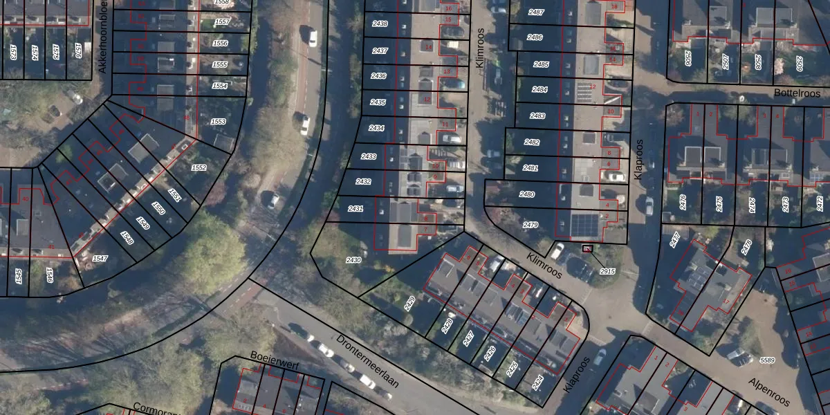 Klimroos 8 is gelegen op kadastraal perceel LDN01S2431. Deze kadastrale aanduiding is uniek en wordt gebruikt door het Kadaster om eigendomsrechten en andere zakelijke rechten vast te leggen. Het perceel maakt onderdeel uit van de kadastrale gemeente Leiden.
