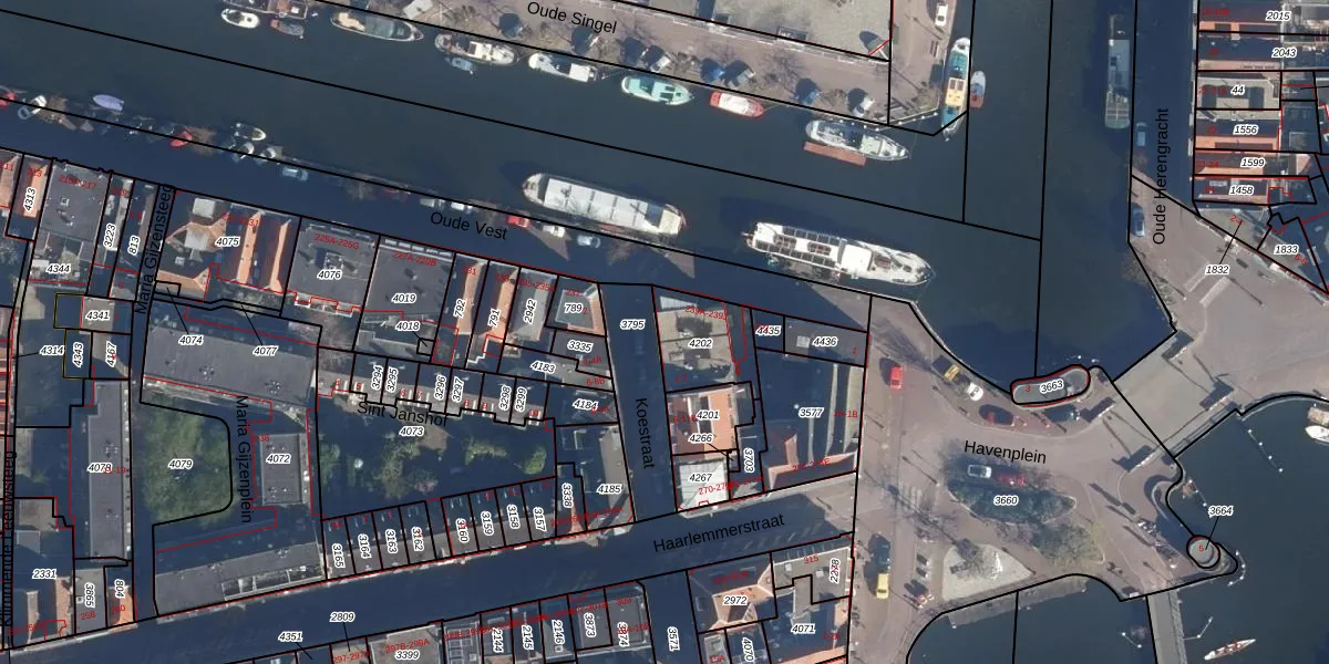 Het adres is gelegen op perceel 4202 in de sectie H en de kadastrale gemeente Leiden. De kadastrale aanduiding is aldus LDN01-H-4202. Het perceel is 193 m² groot. Dat is kleiner dan de gemiddelde perceeloppervlakte in Leiden, dat op 703,94 m² ligt. Het grootste perceel in de kadastrale gemeente is 51,8 ha. Het kleinste perceel heeft een oppervlakte van 0 m². Op het perceel zijn 13 adressen aanwezig. De huidige grenzen van het perceel zijn digitaal in de Basisregistratie Kadaster (BRK) geregistreerd op 26-05-1999.