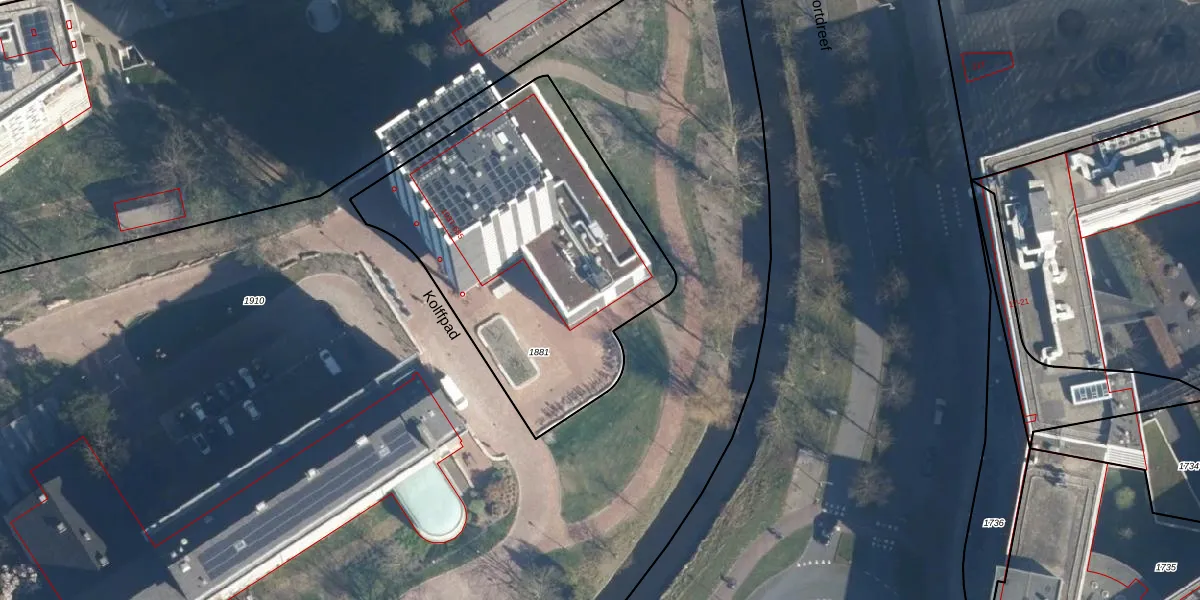 Het perceel waarop het adres ligt is LDN01-R-1881. De afkorting 'LDN01' staat voor kadastrale gemeente Leiden. De gemiddelde perceeloppervlakte in de kadastrale gemeente Leiden is 704,9 m². Dit perceel is met zijn 1653 m² dus groter dan gemiddeld. De grootste perceeloppervlakte in de kadastrale gemeente is 51,8 ha. De kleinste oppervlakte bedraagt 0 m². Er zijn 296 adressen aanwezig op het perceel. In de Basisregistratie Kadaster (BRK) werden de grenzen van het perceel geregistreerd op 17-01-2025.