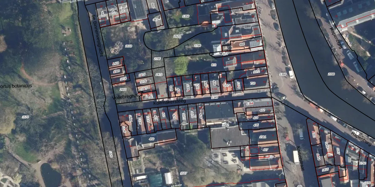 Het perceel waarop Kolfmakersteeg 13 staat heeft een oppervlakte van 55 m². Dit is een klein perceel. De perceeloppervlakte wordt geregistreerd door het Kadaster. Gedetailleerde informatie over de maten van dit perceel kunt u vinden in het rapport Kadastrale kaart met maatvoering van Kolfmakersteeg 13.