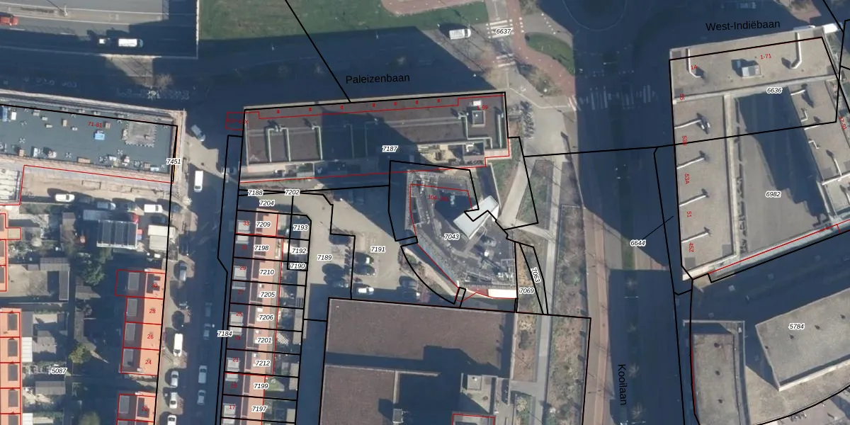 Het adres is gelegen op perceel 7043 in de sectie K en de kadastrale gemeente Leiden. De kadastrale aanduiding is aldus LDN01-K-7043. De gemiddelde perceeloppervlakte in de kadastrale gemeente Leiden is 703,94 m². Dit perceel is met zijn 735 m² dus groter dan gemiddeld. Het grootste perceel in de kadastrale gemeente is 51,8 ha. Het kleinste perceel heeft een oppervlakte van 0 m². Op het perceel liggen in totaal 45 adressen. In de Basisregistratie Kadaster (BRK) werden de grenzen van het perceel geregistreerd op 28-08-2019.