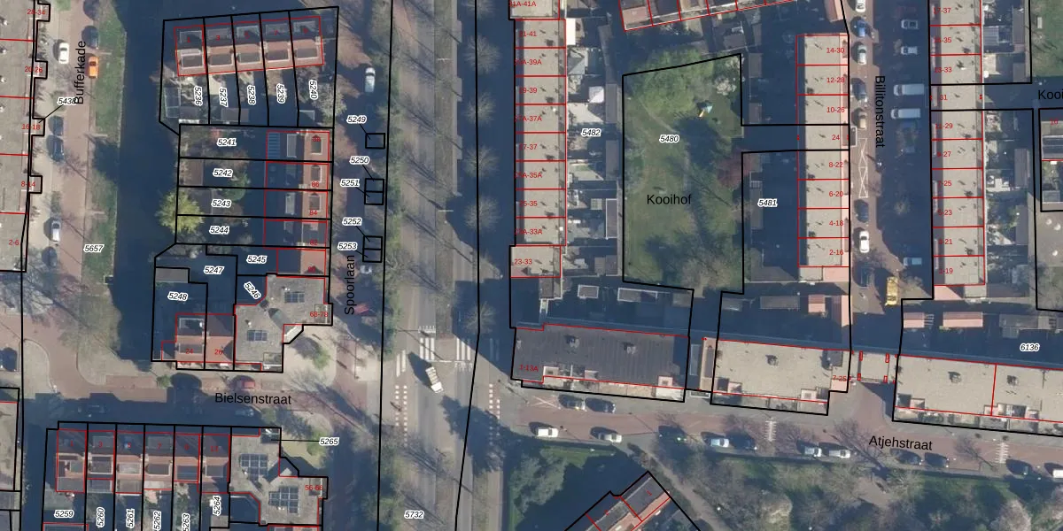 Kooilaan 33 is gelegen op kadastraal perceel LDN01K5482. Deze kadastrale aanduiding is uniek en wordt gebruikt door het Kadaster om eigendomsrechten en andere zakelijke rechten vast te leggen. Het perceel maakt onderdeel uit van de kadastrale gemeente Leiden.