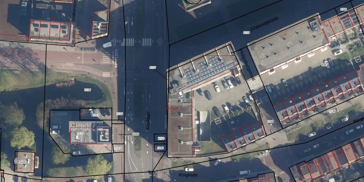 Het perceel waarop Kooilaan 41-L-1 staat heeft een oppervlakte van 2470 m². Dit is een zeer groot perceel. De perceeloppervlakte wordt geregistreerd door het Kadaster. Gedetailleerde informatie over de maten van dit perceel kunt u vinden in het rapport Kadastrale kaart met maatvoering van Kooilaan 41-L-1.