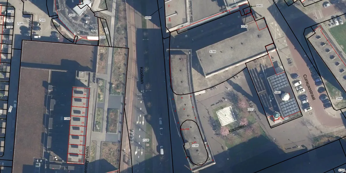 Het perceel waarop Kooilaan 45-D staat heeft een oppervlakte van 1926 m². Dit is een zeer groot perceel. De perceeloppervlakte wordt geregistreerd door het Kadaster. Gedetailleerde informatie over de maten van dit perceel kunt u vinden in het rapport Kadastrale kaart met maatvoering van Kooilaan 45-D.