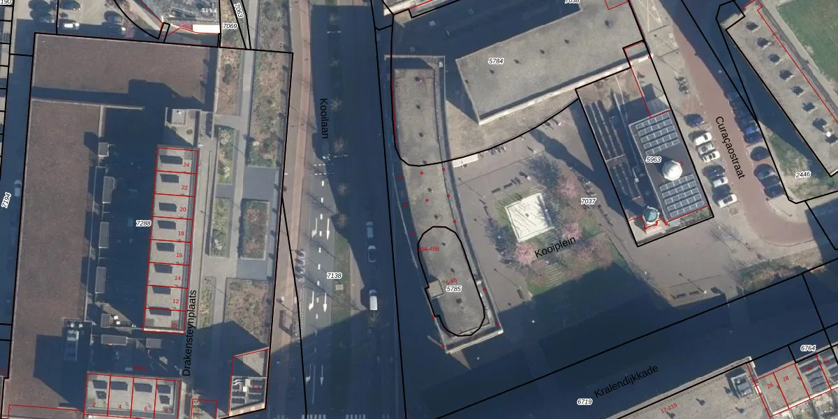 Het perceel waarop Kooilaan 47-S staat heeft een oppervlakte van 5409 m². Dit is een zeer groot perceel. De perceeloppervlakte wordt geregistreerd door het Kadaster. Gedetailleerde informatie over de maten van dit perceel kunt u vinden in het rapport Kadastrale kaart met maatvoering van Kooilaan 47-S.