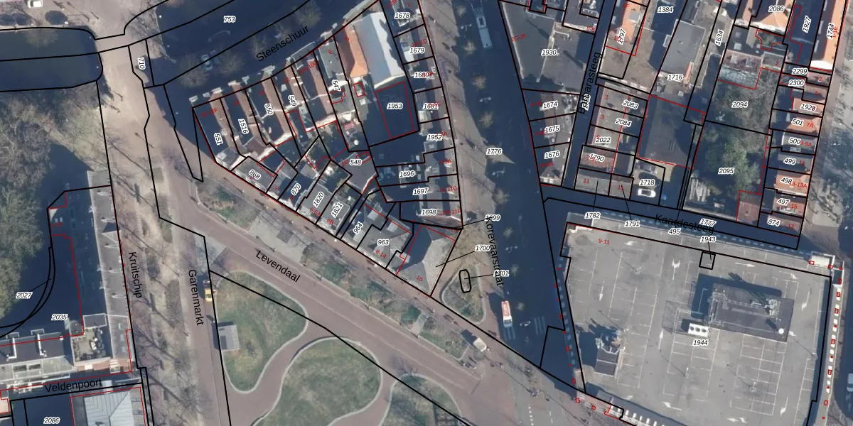 Het adres is gelegen op perceel 1698 in de sectie D en de kadastrale gemeente Leiden. De kadastrale aanduiding is aldus LDN01-D-1698. De gemiddelde perceelgrootte in Leiden is 703,94 m². Dit perceel is kleiner: de perceeloppervlakte bedraagt 78 m². Het grootste perceel in de kadastrale gemeente is 51,8 ha. Het kleinste perceel heeft een oppervlakte van 0 m². Er zijn 3 adressen aanwezig op het perceel. In de Basisregistratie Kadaster (BRK) werden de grenzen van het perceel geregistreerd op 06-02-1998.