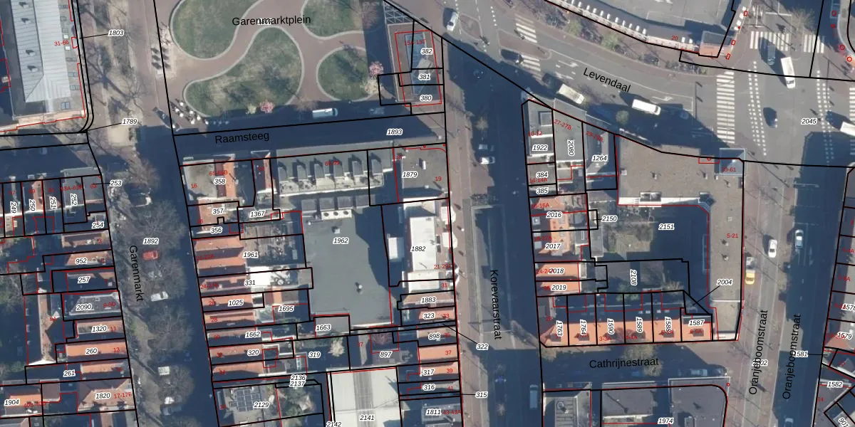 Het adres ligt op het perceel LDN01-E-1882, dat zich in de kadastrale gemeente Leiden bevindt. Het perceel is 294 m² groot. Dat is kleiner dan de gemiddelde perceeloppervlakte in Leiden, dat op 703,94 m² ligt. Het grootste perceel in de kadastrale gemeente is 51,8 ha. Het kleinste perceel heeft een oppervlakte van 0 m². Op het perceel liggen in totaal 13 adressen. De huidige grenzen van het perceel zijn digitaal in de Basisregistratie Kadaster (BRK) geregistreerd op 27-08-2003.