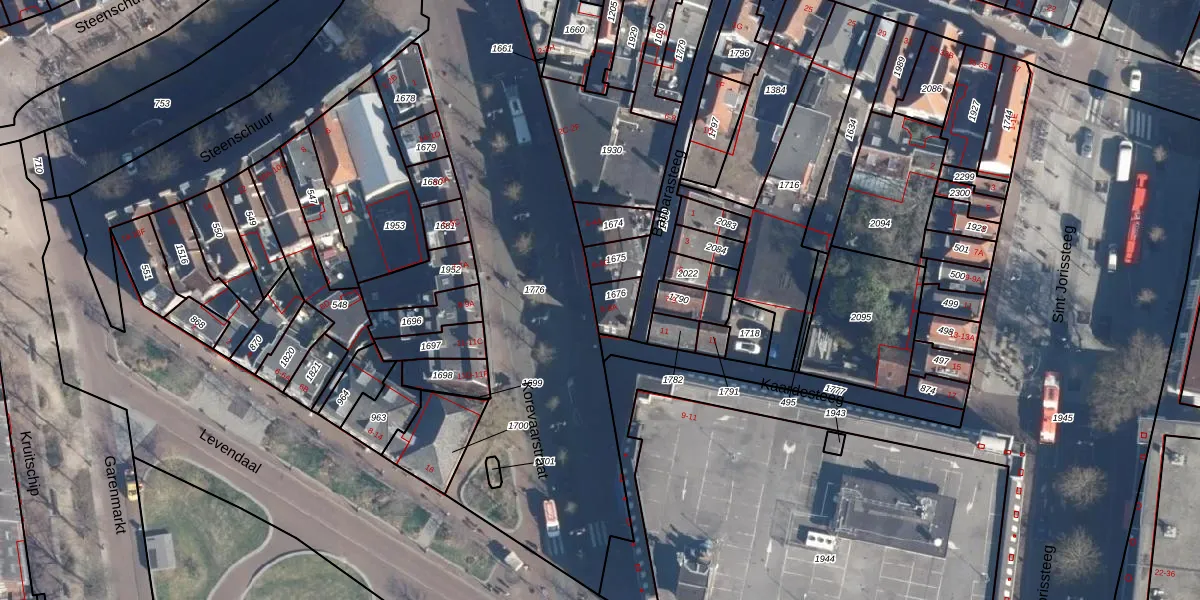 Het adres ligt op het perceel LDN01-D-1676, dat zich in de kadastrale gemeente Leiden bevindt. Het perceel is kleiner dan gemiddeld in Leiden. Het perceel is 63 m² groot, terwijl het gemiddelde ligt op 703,99 m². Het kleinste perceel in de kadastrale gemeente is 0 m² groot. De grootste perceeloppervlakte is 51,8 ha. Op het perceel liggen in totaal 2 adressen. De laatste wijziging in het de Basisregistratie Kadaster (BRK) was op 06-02-1998.