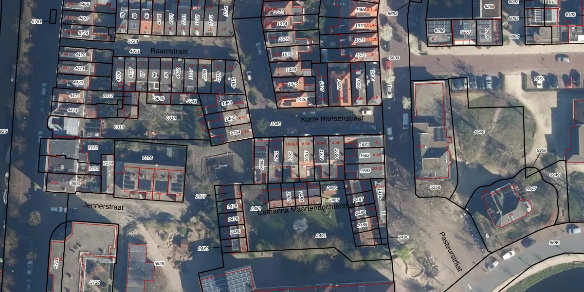 Het adres is gelegen op perceel 1677 in de sectie K en de kadastrale gemeente Leiden. De kadastrale aanduiding is aldus LDN01-K-1677. De gemiddelde perceelgrootte in Leiden is 703,94 m². Dit perceel is kleiner: de perceeloppervlakte bedraagt 84 m². De grootste perceeloppervlakte in de kadastrale gemeente is 51,8 ha. De kleinste oppervlakte bedraagt 0 m². Er zijn 2 adressen aanwezig op het perceel. De laatste wijziging in het de Basisregistratie Kadaster (BRK) was op 27-08-2003.