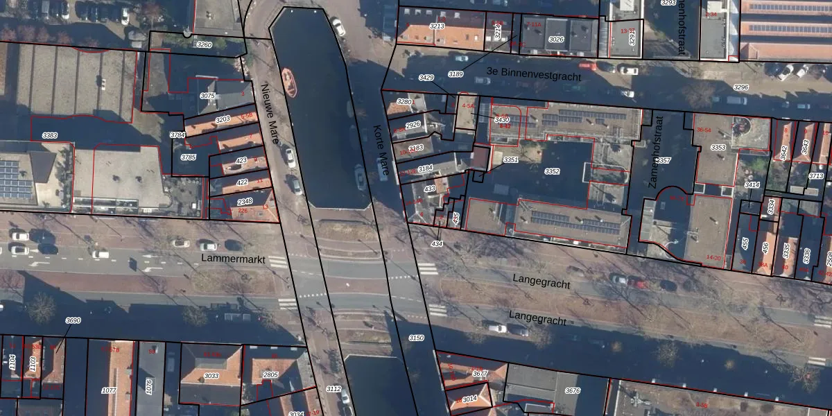 Het adres is gelegen op perceel 433 in de sectie B en de kadastrale gemeente Leiden. De kadastrale aanduiding is aldus LDN01-B-433. De gemiddelde perceelgrootte in Leiden is 704,01 m². Dit perceel is kleiner: de perceeloppervlakte bedraagt 122 m². Het grootste perceel in de kadastrale gemeente is 51,8 ha. Het kleinste perceel heeft een oppervlakte van 0 m². Op het perceel liggen in totaal 4 adressen. In de Basisregistratie Kadaster (BRK) werden de grenzen van het perceel geregistreerd op 04-10-2007.