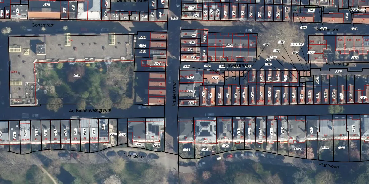 Het adres ligt op het perceel LDN01-D-1880, dat zich in de kadastrale gemeente Leiden bevindt. Het perceel is 102 m² groot. Dat is kleiner dan de gemiddelde perceeloppervlakte in Leiden, dat op 703,94 m² ligt. Het grootste perceel in de kadastrale gemeente is 51,8 ha. Het kleinste perceel heeft een oppervlakte van 0 m². Er zijn 4 adressen aanwezig op het perceel. De huidige grenzen van het perceel zijn digitaal in de Basisregistratie Kadaster (BRK) geregistreerd op 23-12-2005.