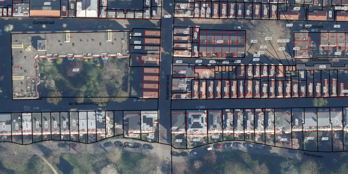 Het adres ligt op het perceel LDN01-D-1880, dat zich in de kadastrale gemeente Leiden bevindt. Het perceel is 102 m² groot. Dat is kleiner dan de gemiddelde perceeloppervlakte in Leiden, dat op 703,94 m² ligt. De grootste perceeloppervlakte in de kadastrale gemeente is 51,8 ha. De kleinste oppervlakte bedraagt 0 m². Op het perceel zijn 4 adressen aanwezig. In de Basisregistratie Kadaster (BRK) werden de grenzen van het perceel geregistreerd op 23-12-2005.