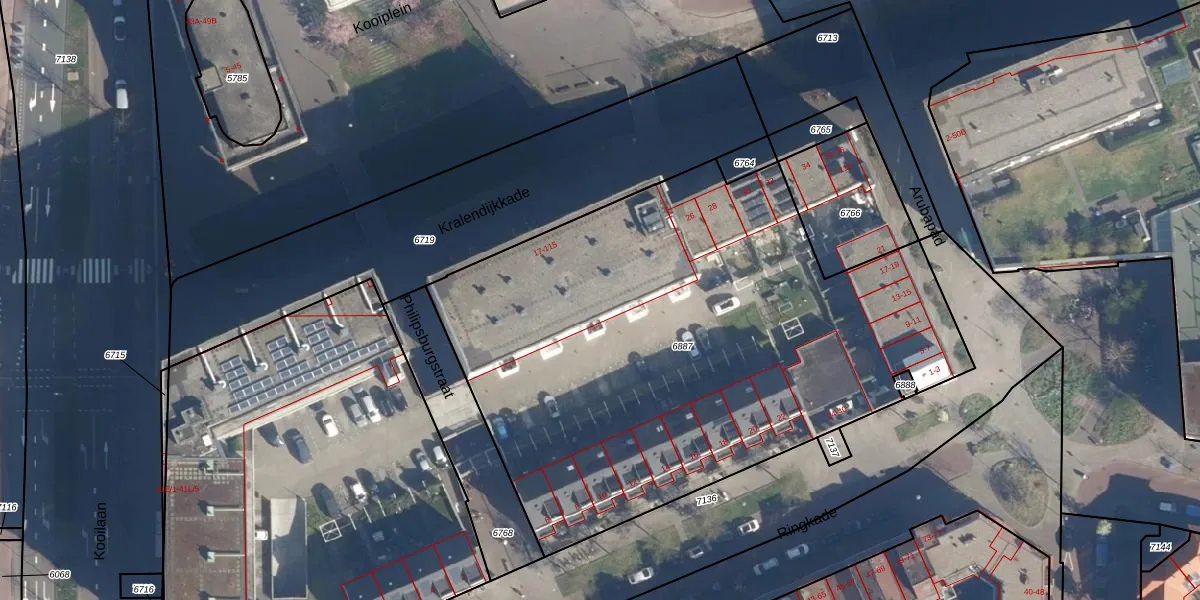 Kralendijkkade 107 is gelegen op kadastraal perceel LDN01K6887. Deze kadastrale aanduiding is uniek en wordt gebruikt door het Kadaster om eigendomsrechten en andere zakelijke rechten vast te leggen. Het perceel maakt onderdeel uit van de kadastrale gemeente Leiden.