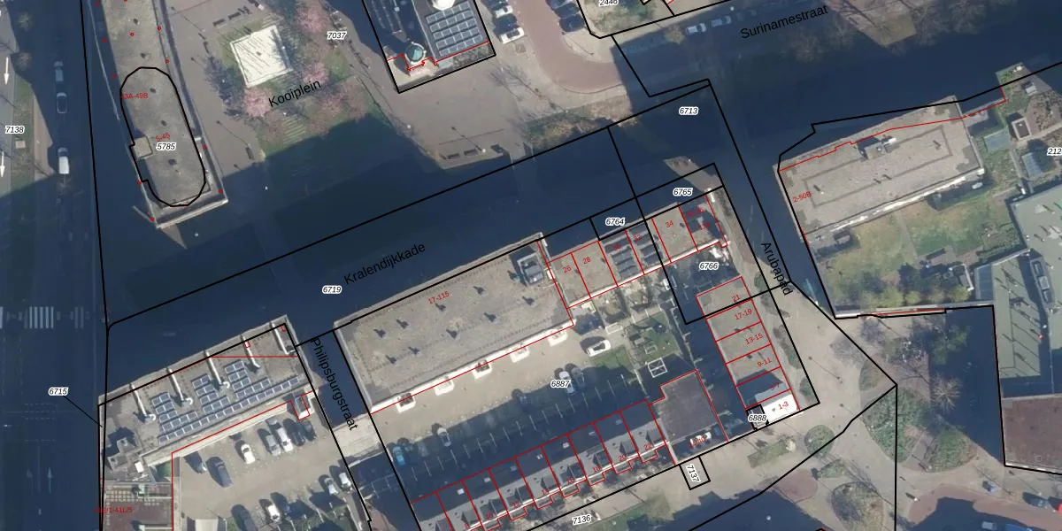 Kralendijkkade 55 is gelegen op kadastraal perceel LDN01K6887. Deze kadastrale aanduiding is uniek en wordt gebruikt door het Kadaster om eigendomsrechten en andere zakelijke rechten vast te leggen. Het perceel maakt onderdeel uit van de kadastrale gemeente Leiden.