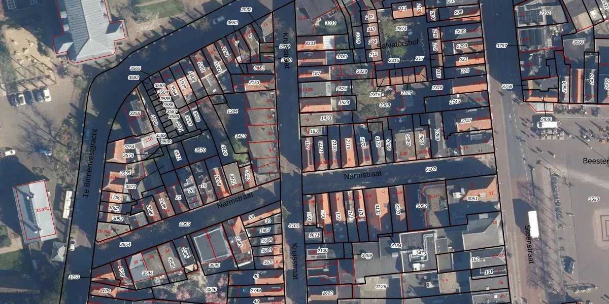 Kruisstraat 7-A is gelegen op kadastraal perceel LDN01B182. Deze kadastrale aanduiding is uniek en wordt gebruikt door het Kadaster om eigendomsrechten en andere zakelijke rechten vast te leggen. Het perceel maakt onderdeel uit van de kadastrale gemeente Leiden.
