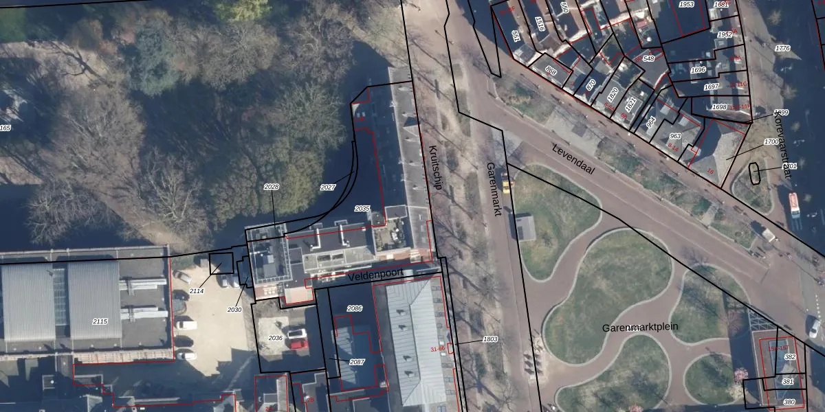 Het adres is gelegen op perceel 2035 in de sectie E en de kadastrale gemeente Leiden. De kadastrale aanduiding is aldus LDN01-E-2035. Het perceel is met 1222 m² relatief groot. Het gemiddelde ligt in de kadastrale gemeente Leiden op 703,94 m². Het kleinste perceel in de kadastrale gemeente is 0 m² groot. De grootste perceeloppervlakte is 51,8 ha. Er zijn 30 adressen aanwezig op het perceel. De huidige grenzen van het perceel zijn digitaal in de Basisregistratie Kadaster (BRK) geregistreerd op 21-11-2011.