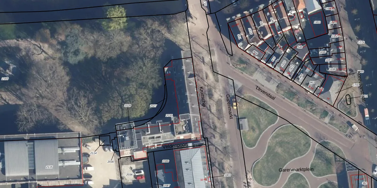 Het adres is gelegen op perceel 2035 in de sectie E en de kadastrale gemeente Leiden. De kadastrale aanduiding is aldus LDN01-E-2035. Het perceel is met 1222 m² relatief groot. Het gemiddelde ligt in de kadastrale gemeente Leiden op 704,18 m². Het kleinste perceel in de kadastrale gemeente is 0 m² groot. De grootste perceeloppervlakte is 51,8 ha. Er zijn 30 adressen aanwezig op het perceel. De laatste wijziging in het de Basisregistratie Kadaster (BRK) was op 21-11-2011.