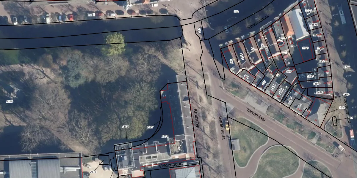 Kruitschip 20 is gelegen op kadastraal perceel LDN01E2035. Deze kadastrale aanduiding is uniek en wordt gebruikt door het Kadaster om eigendomsrechten en andere zakelijke rechten vast te leggen. Het perceel maakt onderdeel uit van de kadastrale gemeente Leiden.