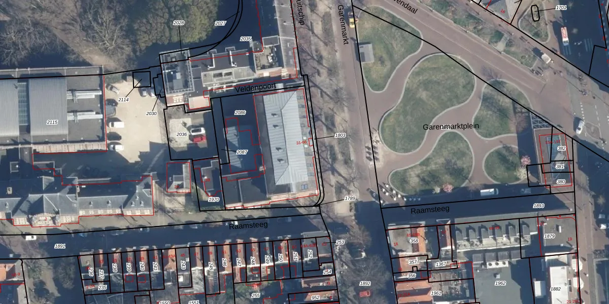Het perceel waarop het adres ligt is LDN01-E-2086. De afkorting 'LDN01' staat voor kadastrale gemeente Leiden. De oppervlakte van het perceel is 1146 m². Dat is groter dan gemiddeld in Leiden, waar de gemiddelde perceeloppervlakte op 704,78 m² ligt. De grootste perceeloppervlakte in de kadastrale gemeente is 51,8 ha. De kleinste oppervlakte bedraagt 0 m². Op het perceel liggen in totaal 39 adressen. De laatste wijziging in het de Basisregistratie Kadaster (BRK) was op 05-12-2008.