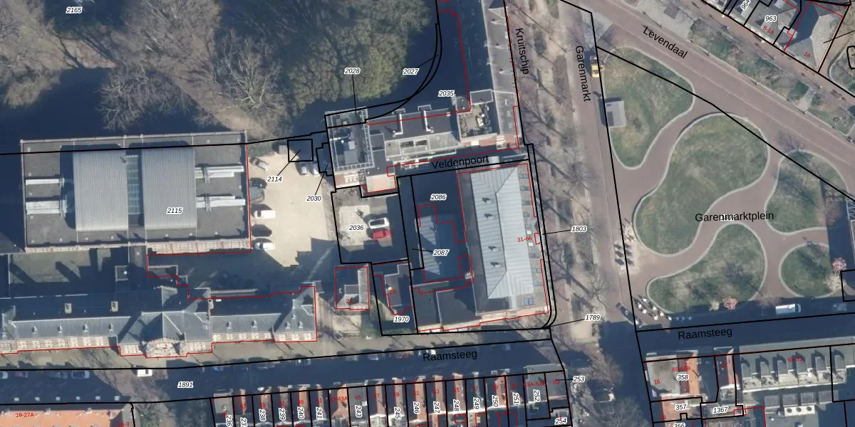 Het adres is gelegen op perceel 2086 in de sectie E en de kadastrale gemeente Leiden. De kadastrale aanduiding is aldus LDN01-E-2086. De gemiddelde perceeloppervlakte in de kadastrale gemeente Leiden is 704,97 m². Dit perceel is met zijn 1146 m² dus groter dan gemiddeld. De grootste perceeloppervlakte in de kadastrale gemeente is 51,8 ha. De kleinste oppervlakte bedraagt 0 m². Er zijn 39 adressen aanwezig op het perceel. De huidige grenzen van het perceel zijn digitaal in de Basisregistratie Kadaster (BRK) geregistreerd op 05-12-2008.