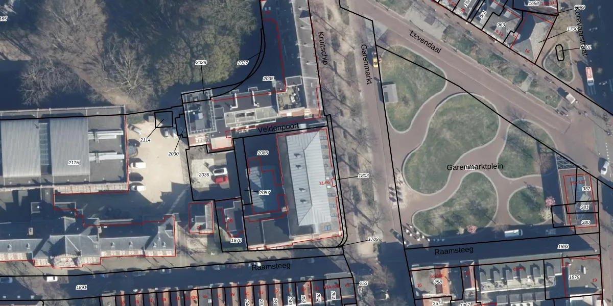 Het perceel waarop het adres ligt is LDN01-E-2086. De afkorting 'LDN01' staat voor kadastrale gemeente Leiden. De oppervlakte van het perceel is 1146 m². Dat is groter dan gemiddeld in Leiden, waar de gemiddelde perceeloppervlakte op 704,75 m² ligt. Het grootste perceel in de kadastrale gemeente is 51,8 ha. Het kleinste perceel heeft een oppervlakte van 0 m². Op het perceel zijn 39 adressen aanwezig. In de Basisregistratie Kadaster (BRK) werden de grenzen van het perceel geregistreerd op 05-12-2008.