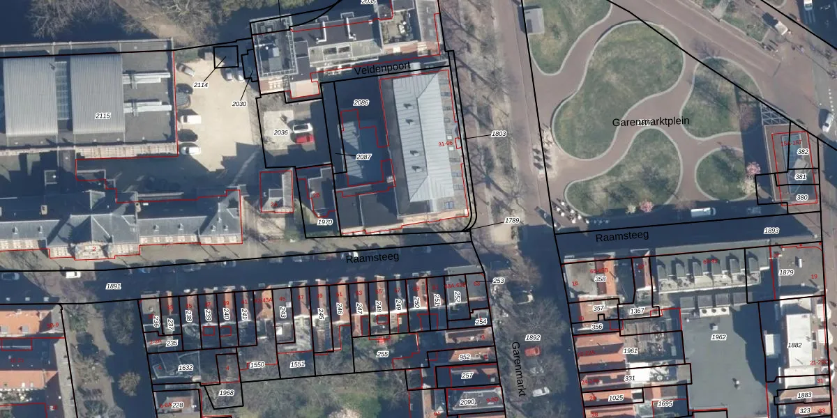 Het perceel waarop het adres ligt is LDN01-E-2086. De afkorting 'LDN01' staat voor kadastrale gemeente Leiden. De oppervlakte van het perceel is 1146 m². Dat is groter dan gemiddeld in Leiden, waar de gemiddelde perceeloppervlakte op 704,78 m² ligt. Het grootste perceel in de kadastrale gemeente is 51,8 ha. Het kleinste perceel heeft een oppervlakte van 0 m². Op het perceel zijn 39 adressen aanwezig. De laatste wijziging in het de Basisregistratie Kadaster (BRK) was op 05-12-2008.
