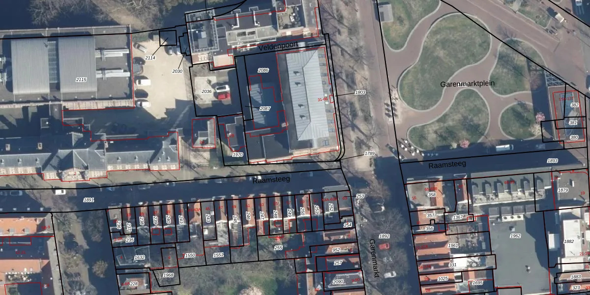 Het perceel waarop het adres ligt is LDN01-E-2086. De afkorting 'LDN01' staat voor kadastrale gemeente Leiden. De oppervlakte van het perceel is 1146 m². Dat is groter dan gemiddeld in Leiden, waar de gemiddelde perceeloppervlakte op 703,99 m² ligt. Het grootste perceel in de kadastrale gemeente is 51,8 ha. Het kleinste perceel heeft een oppervlakte van 0 m². Op het perceel liggen in totaal 39 adressen. De huidige grenzen van het perceel zijn digitaal in de Basisregistratie Kadaster (BRK) geregistreerd op 05-12-2008.