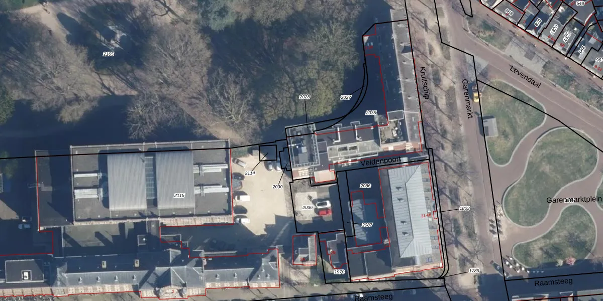 Het adres is gelegen op perceel 2035 in de sectie E en de kadastrale gemeente Leiden. De kadastrale aanduiding is aldus LDN01-E-2035. Het perceel is met 1222 m² relatief groot. Het gemiddelde ligt in de kadastrale gemeente Leiden op 704,9 m². Het kleinste perceel in de kadastrale gemeente is 0 m² groot. De grootste perceeloppervlakte is 51,8 ha. Op het perceel liggen in totaal 30 adressen. De huidige grenzen van het perceel zijn digitaal in de Basisregistratie Kadaster (BRK) geregistreerd op 21-11-2011.
